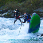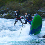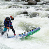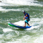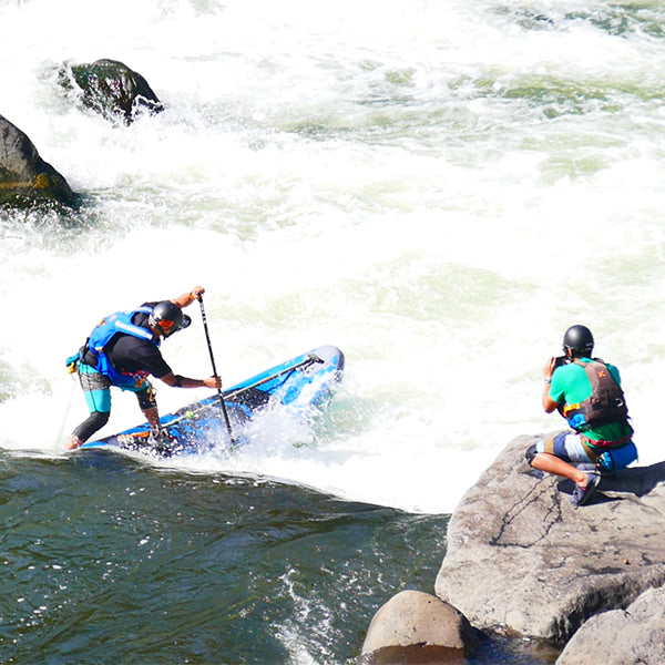 波に乗る能力と、波を突破する力、フリースタイルに必要な安定感が持ち味です。さらに、アウトラインを完全にリニューアルし、厚さ6インチの高浮力でも、しっかり沈められ、よりロールの安定感を増したテールを採用しています。どんな波も突き抜け、ドロップでストップせずに抜けていくノーズ、ノーパドルでもしっかり流れを掴み、旋回していくノーズからテールへのボトムのライン、ホワイトウォーターや激流、静水、流水のフリースタイルに特化させた最強リバーSUPです。