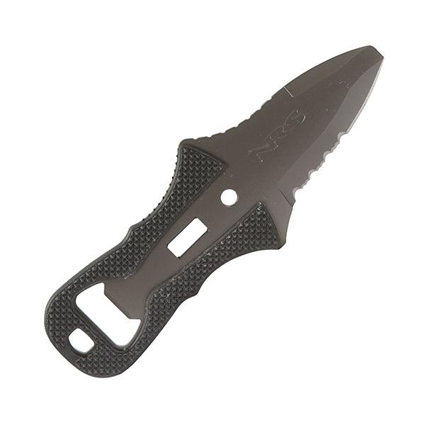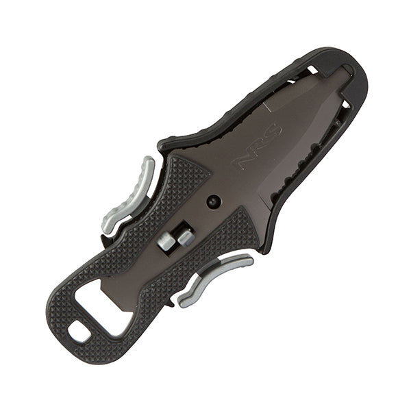 NRS エヌアールエス Co-Pilot ナイフ 2.0はコンパクト設定のリバーナイフです。片刃タイプでスムーズな刃とギザギザの波刃部分があります。波刃はロープをスムーズにカット可能です。先端は尖っていない安全設計でドライバーとしても機能します。ケースの両サイドを同時に握ることでロックを解除でき、簡単に素早くケースを外すことが可能です。