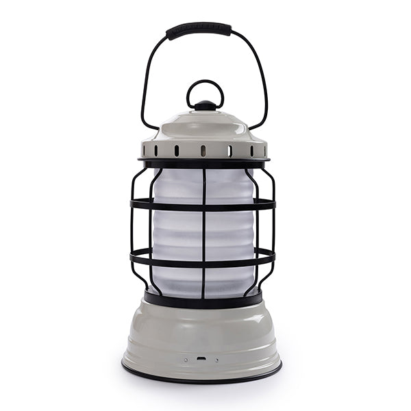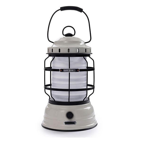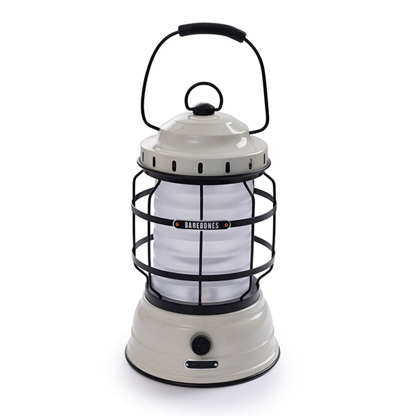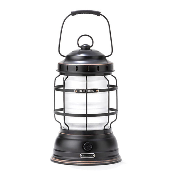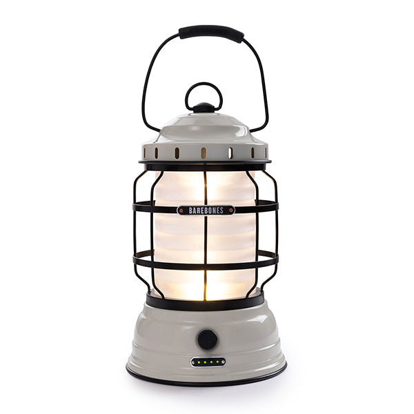 Barebones ベアボーンズ フォレストランタンLED2.0は炭鉱用カンテラを模した充電式のランタンです。バッテリーは充電式リチウム電池で、やさしい電球色LED球を採用しています。出力は最大200ルーメンで3時間、最小出力で80時間以上点灯します。点灯中、スチール製ボディは決して熱くなりません。付属USBケーブルで充電し、バッテリー残量はインジケータで表示されます。設定により3-80時間の連続点灯が可能。USBケーブル経由で充電可能なリチウムイオン電池。点灯時に音がしなく吊るしても置いても使えるデザイン。