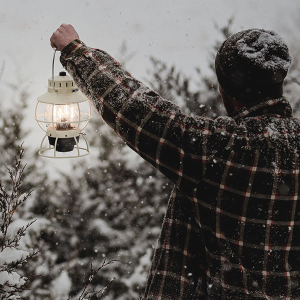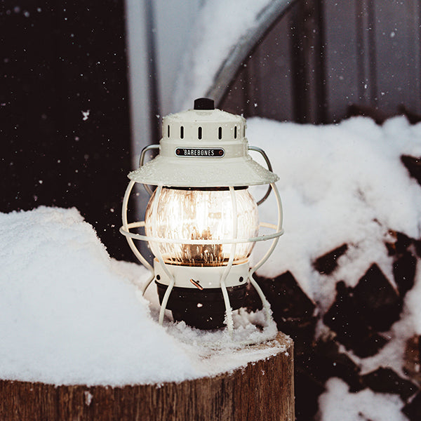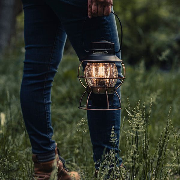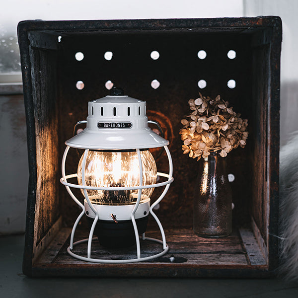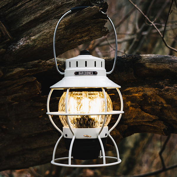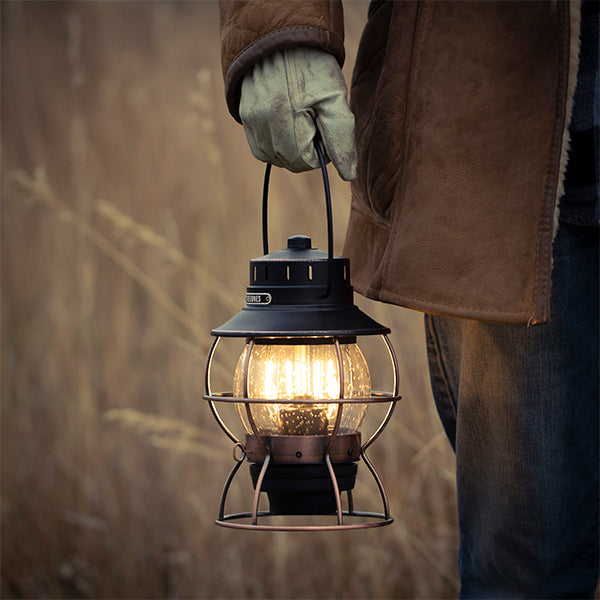 Barebones ベアボーンズ レイルロードランタンLEDはレイルロードランタンの現代版です。エジソン球タイプのLEDを採用し、雰囲気のある仕上げです。出力はハイモードで3.5時間、ローモードで100時間点灯します。