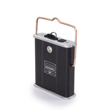 ヴィンテージアポセカリー(薬屋)をイメージし、マットメタルのスリムなシルエットが、ヴィンテージ調のライトと調和します。美しい銅線のハンドルと底面のマグネットは、吊るしたり、あらゆる金属面に接続したりと、多様な使い方ができます。この10,000mAhのバージョンは、LEDフラッシュライト、USB-AおよびUSB-C出力、USB-C充電ケーブルが付属しているのが特徴です。グランピングの現場や、コンセントから遠い裏庭でのたまり場、緊急時の使用などに理想的です。充電時間は4.5時間、駆動時間は最大10時間です。