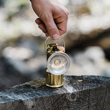 ヴィンテージのマイナーランプのルックアンドフィールに触発されたこの新しくゴージャスなランタンは、真鍮と銅のディテール、滑らかな調光、内部充電式バッテリーを備えています。強力な底部磁石により、ランタンを任意の金属面に取り付けることができます。このエレガントなライトは手にぴったりとフィットし、どんなシーンにも美しく調和します。