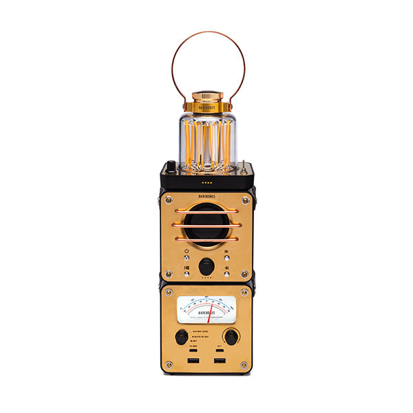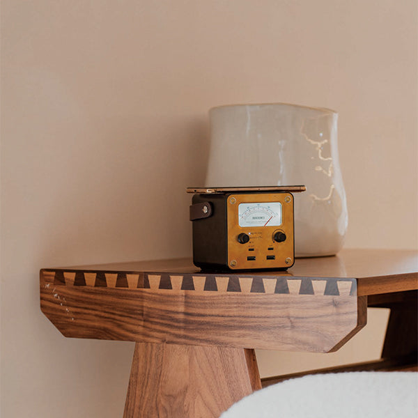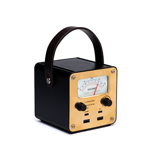 レトロな雰囲気のパワーメーターは、バッテリー レベルのパーセンテージ、または入力/出力の正味ワット数を測定します。暗闇でも見やすいよう明るさ調整ノブ付きバックライトが付いています。