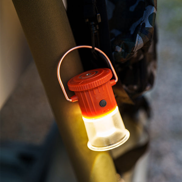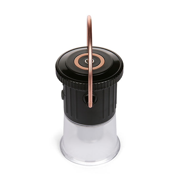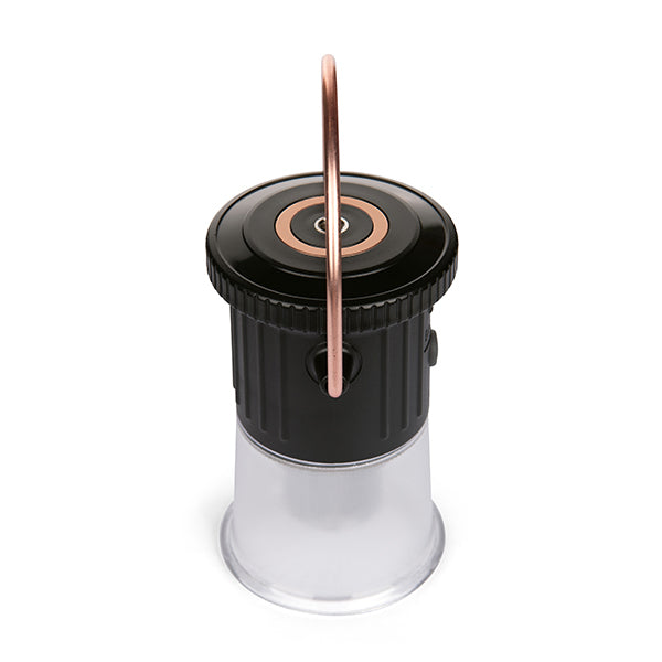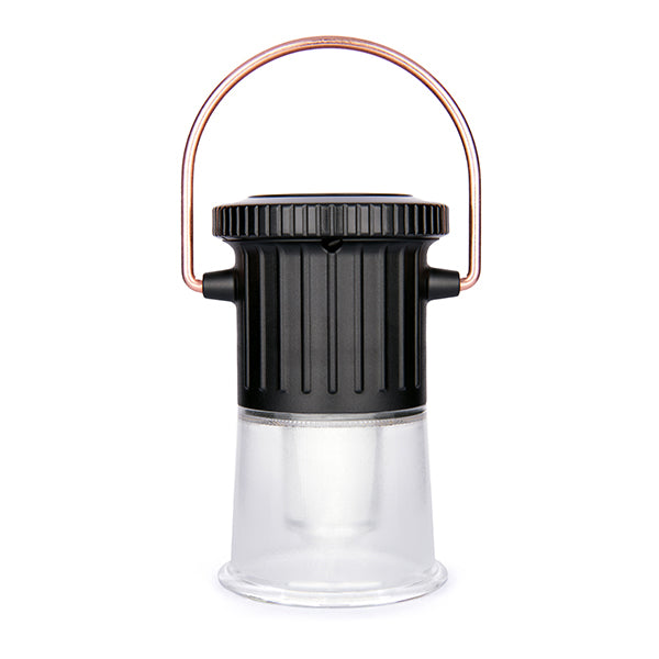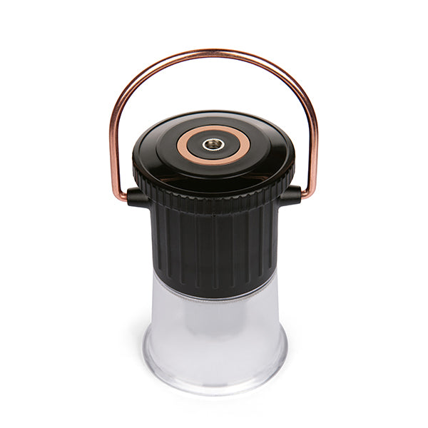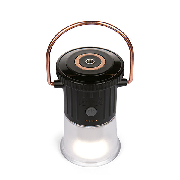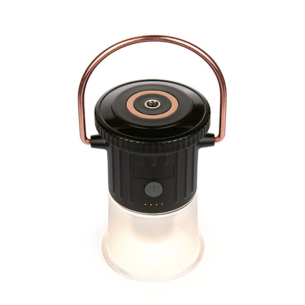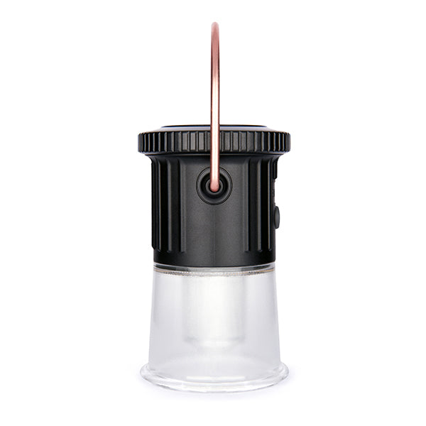 重量わずか176gという軽量コンパクト設計で、持ち運びのしやすさが魅力のライトです。キャンプ用としてはもちろん、日常使いの読書灯や非常時の備えとしても、幅広い場面で活躍します。機能性にも優れており、底部がねじ込み式構造になっているため、お手持ちのスタンドや三脚に簡単に取り付けてご使用いただけます。自由な場所に設置が可能なので、テーブルの上など特定の場所を照らすことも可能。さらに、上部にはシックな銅製リングと便利な磁気ベースを備えています。この銅製リングは180度以上回転するため、テントのポールにつるしたり、金属製の棚にピタッと固定したりと、設置場所を選ばず、光の向きを自由自在に調整可能です。耐久性の高い素材を使用しているため、アウトドアの厳しい環境でもしっかりと照らしてくれます。