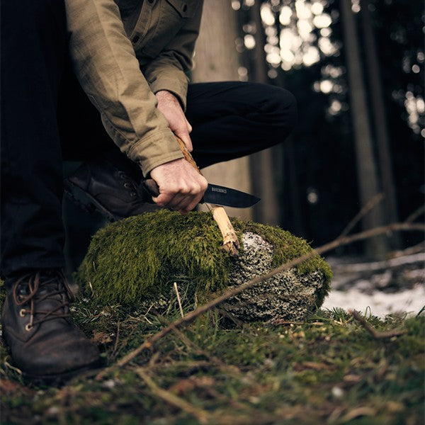 Barebones ベアボーンズ No6 フィールドナイフ2.0はアウトドアには欠かせないアウトドアマン向けナイフです。フルタングで強化された高炭素焼き戻しスチールブレードは強く信頼性の高いものになります。ワックスキャンバス素材の鞘が付いています。