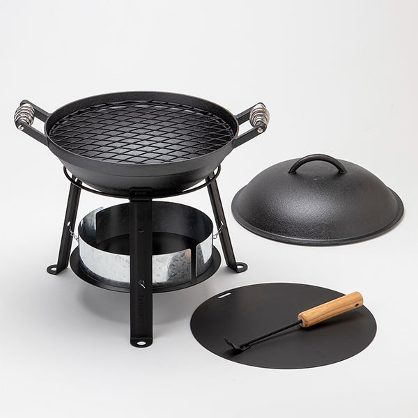 ・セット内容:13インチワークベース、ドーム型蓋、グリルグレート、ベーキングスチール/グリドル、三脚スタンド、石炭トレイ、ウィンドガード、ベルト