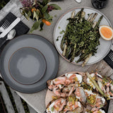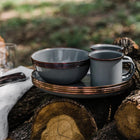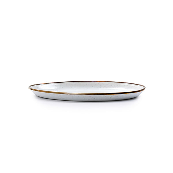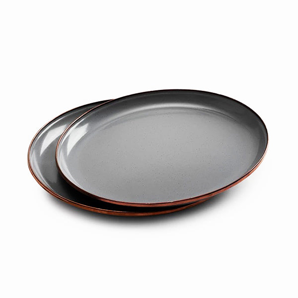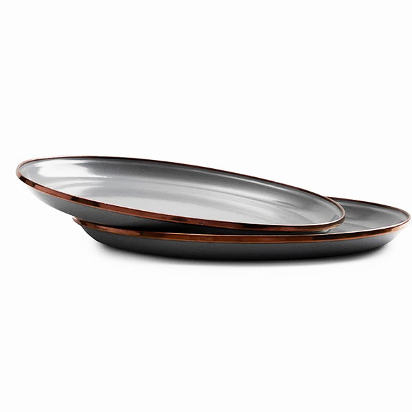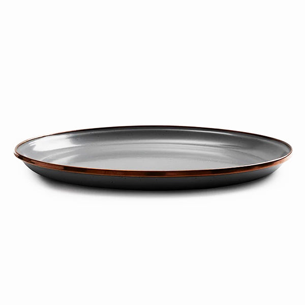 ※エナメルウェアのリムは熱処理され、ブロンズのような緑青仕上げが施されています。プレートの表面と縁は、レモンなどの酸性の食品や、強力な洗剤やクレンザーによって、その独特の色が剥がれてしまうことがあります。