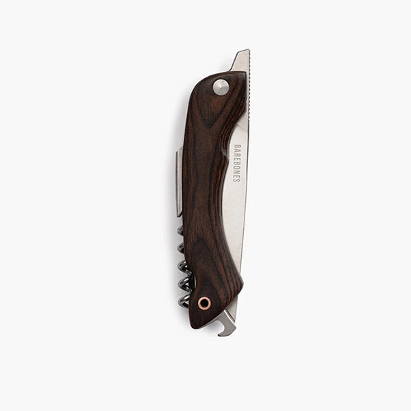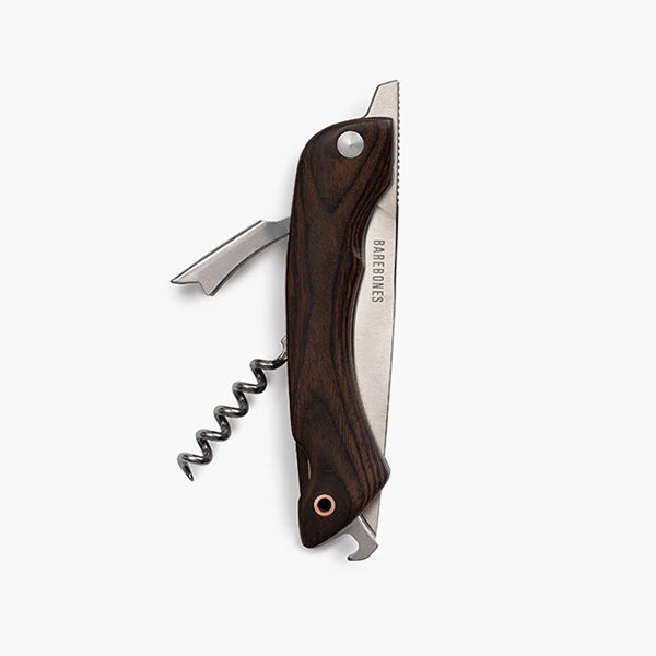 Barebones ベアボーンズ プロビジョン コークスクリューナイフは4インチの半鋸歯状の刃の付いたナイフ、コルクスクリュー、栓抜きの付いたナイフです。