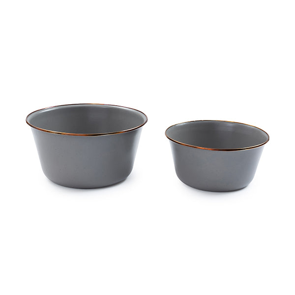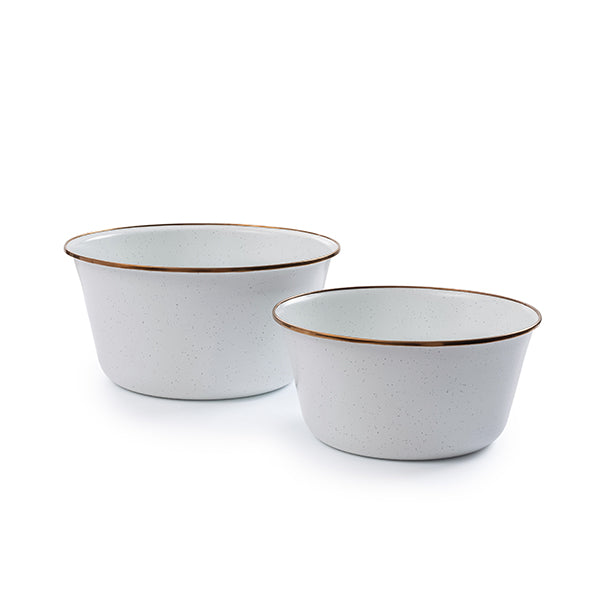 Barebones ベアボーンズ エナメルミキシングボウル 2サイズセットはサイズの違うボウルで湿った材料と乾いた材料を混ぜて、お菓子やパンなどを作ることができ、キャンプキットにもキッチンでの料理にも十分な耐久性と洗練されたデザインを備えたホーロー加工の施されたエナメル製ミキシングボウルセットです。