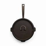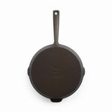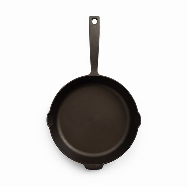 内側を三度研磨した滑らかな表面のスキレットで、少し長いハンドルが、熱分散と人間工学的基づき握りやすさを計算したグリップハンドルになっています。両サイドに注ぎ口が付き、利き手を選びません。また、スキレットカバーも付属し、ダッチオーブンのようにチャコールを載せやすい設計の為、室内外問わずに、使用できます。オーガニックのヒマワリ油でシーズニングされているので、箱から出してすぐに使用できます。