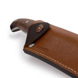 切る、さいの目切り、スライス、チョッピングに最適なアドベンチャーシェフナイフは、キャンプやアウトドアでの調理に欠かせないナイフです。クラシックな曲線と先細りのヨーロッパ製ブレードは、あなたの調理ツールキットの中で最も何でもこなす、働き者のナイフのひとつとなるでしょう。グリルで焼く肉の塊、ピクニックランチのためのフルーツのスライス、ダッチオーブン料理に混ぜる香りの良いハーブのみじん切りなど。Aus 8ステンレス鋼で作られた8インチのブレードは、研ぎ直しやメンテナンスが簡単で、エッジを長く保ち、チップや腐食に耐性があります。フルタングデザインは、コントロールと多用途性を可能にし、厚い背は万能カッティングニーズに理想的です。ピンチグリップやハンマーで簡単に使用できます。耐久性のあるコンポジットローズウッドハンドルは、快適なグリップで美しい美しさを提供します。付属のフルグレインカウレザーシースは、ブレードを鈍化から保護しながら、実使用に耐える仕様です。