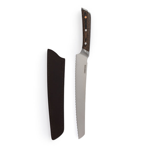 Barebones ベアボーンズ No.9 ブレッドナイフはフルグレインのカウレザーシースが付いた丈夫なブレッドナイフです。