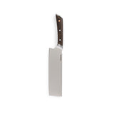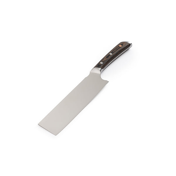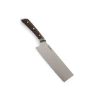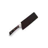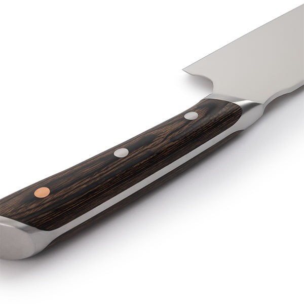 ドイツグレードのステンレス鋼、丈夫なパッカウッド、そして美しい銅のディテールで作られています。フルグレインのカウレザーシースが付属しています。野菜のカットやみじん切りに適している菜切り包丁です。