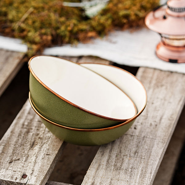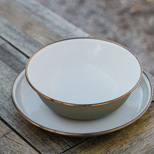 ホーロー加工のされたこのボウルは、洗練されたデザインで耐久性もあるので、アウトドアシーンでも活躍します。