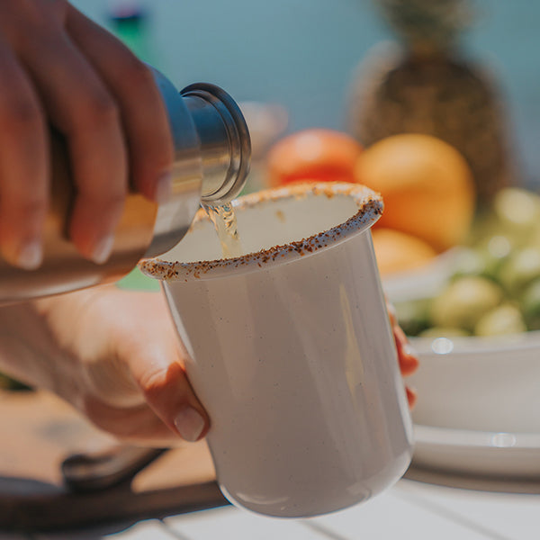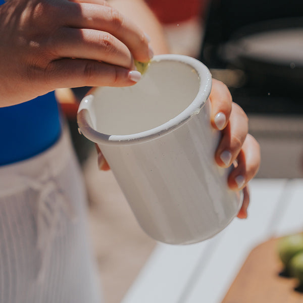 Barebones ベアボーンズ ロールド エナメルウェア カップ は日々の食卓からアウトドアシーンまで幅広く活躍するホーロー製のカップです。
