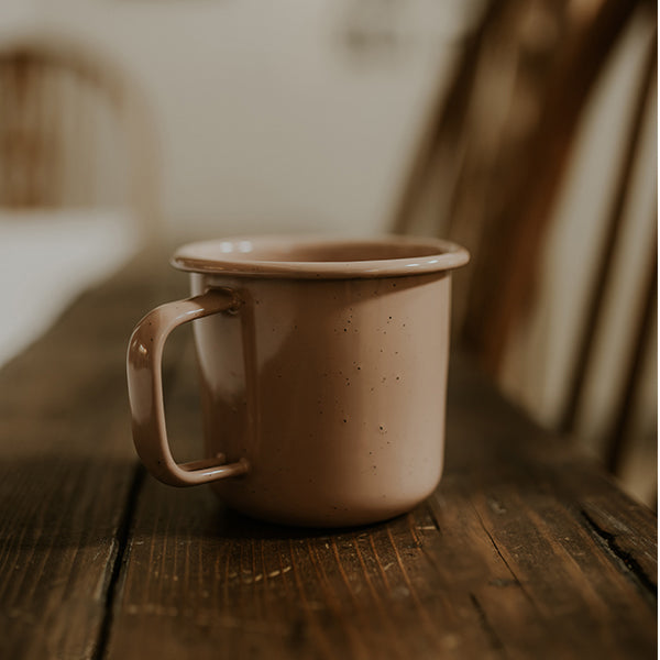Barebones ベアボーンズ ロールド エナメルウェア マグ は日々の食卓からアウトドアシーンまで幅広く活躍するホーロー製のマグカップです。
