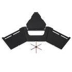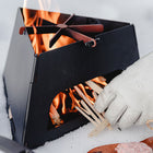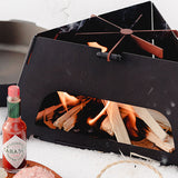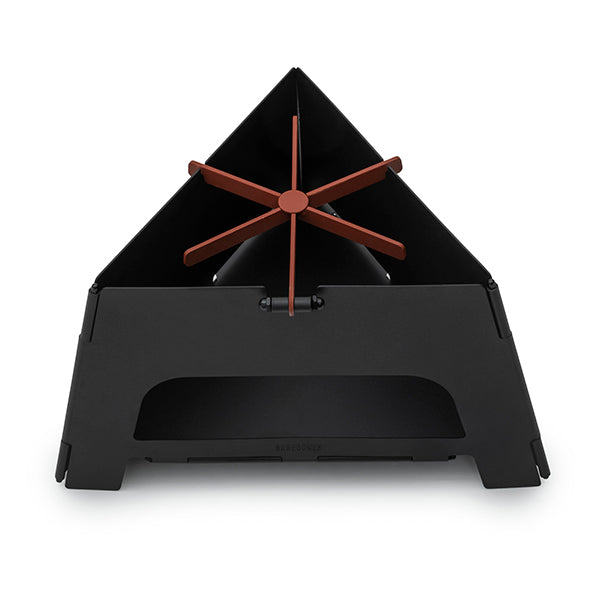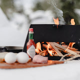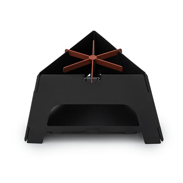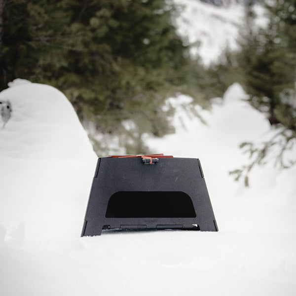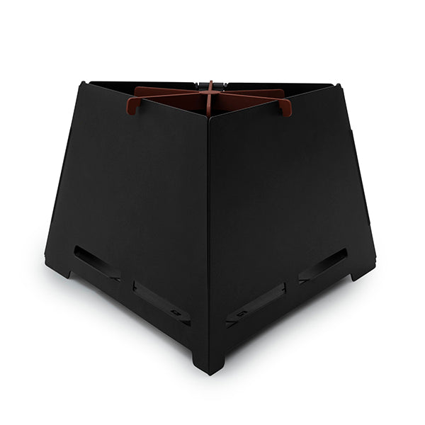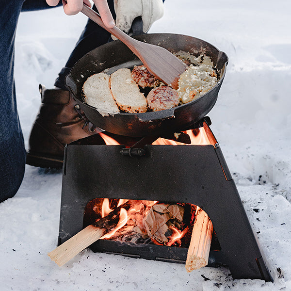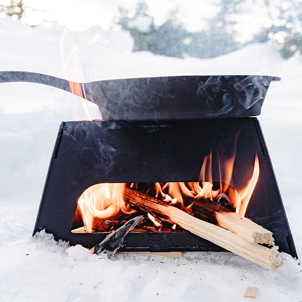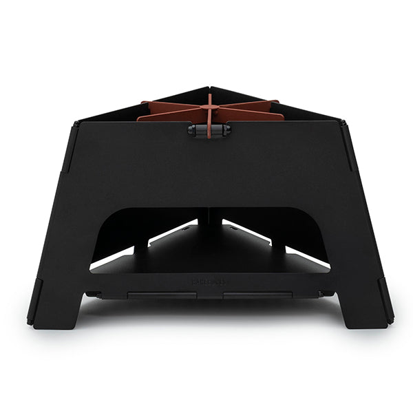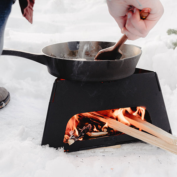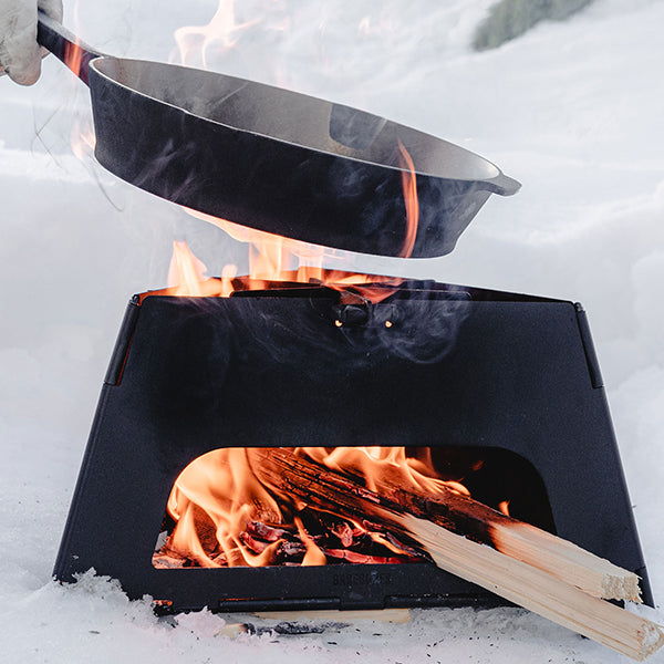 多くのキャンプ用ストーブとは異なり、鋳鉄製のスキレットやダッチオーブンなどの頑丈な調理器具の重量に耐えることができ、ボトムプレートの上では枝や薪、石炭、固形燃料などで炎を保持することがきます。