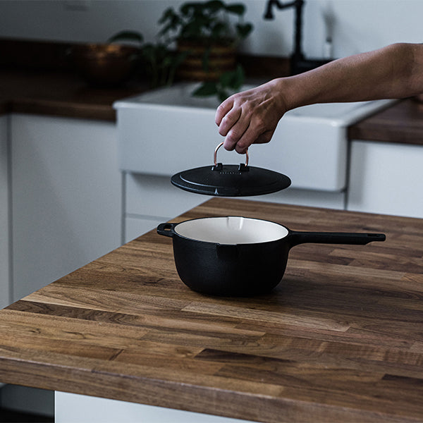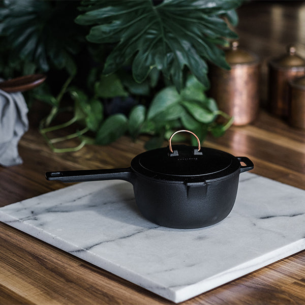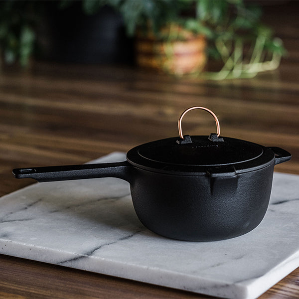Barebones ベアボーンズ エナメルライン キャストアイアン スキレット ソースパンは内側が琺瑯加工された鋳鉄製の片手鍋です。