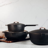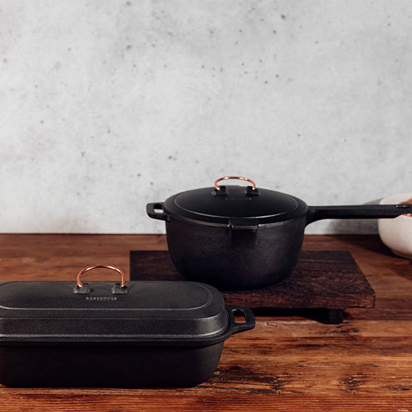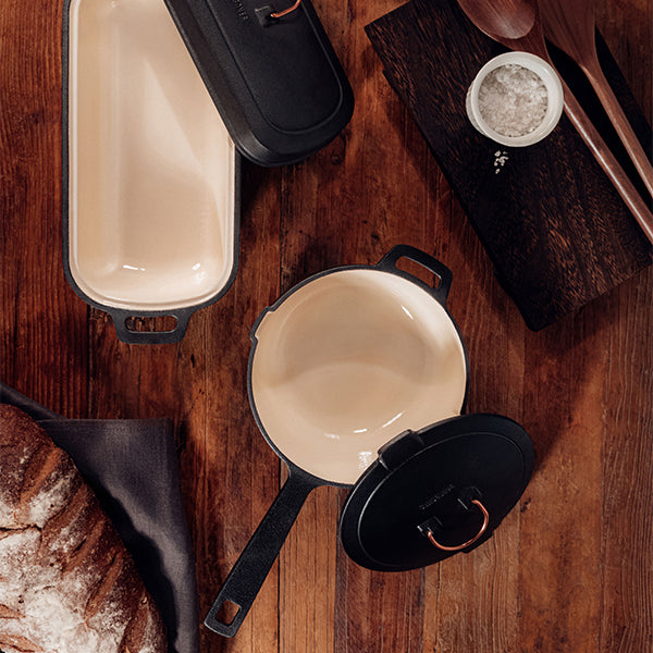 滑らかで焦げ付かないエナメルの使い勝手の良さと鋳鉄の絶対的な耐久性、いいとこどりの新しいエナメルキャストアイアンコレクション。