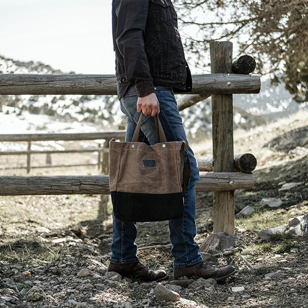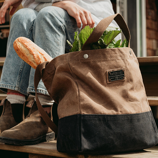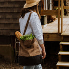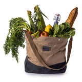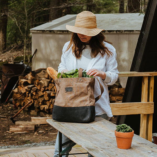 ファーマーズマーケットのトートバッグとして、毎日の食料品入れとして、車のオーガナイザーとしても最適です。厚手で丈夫なコットンストラップと頑丈な金属製の金具を使用しており、何年も使えるトートです。上質なレザーと同様、ワックス加工されたキャンバスは使えば使うほど風合いが増し、美しい艶が生まれます。また、ワックス加工されたキャンバスは非常に丈夫で、汚れを簡単に拭き取ることができ、動物に安全なレザーの代替品として使用しています。