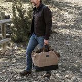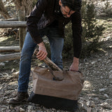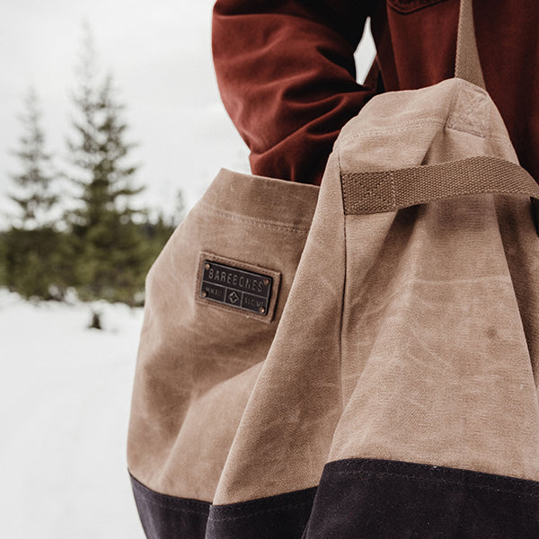 ログキャリア、カーキャンプの荷物持ち、大量の食料品入れなど、様々な用途でお使いいただけます。厚手で丈夫なコットンストラップと頑丈な金属製ハードウェアにより、長年にわたって使用できるバッグとなっています。上質なレザーと同様、ワックス加工されたキャンバスは使えば使うほど風合いが増し、美しい艶が生まれます。また、ワックス加工されたキャンバスは非常に丈夫で、汚れを簡単に拭き取ることができ、動物に安全なレザーの代替品として使用しています。