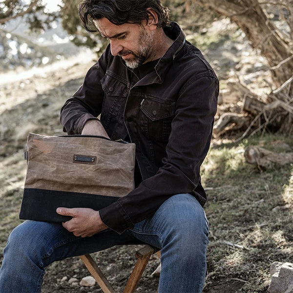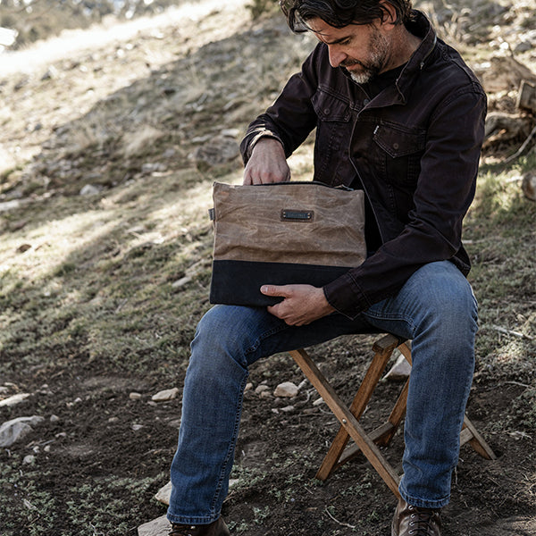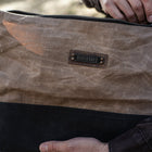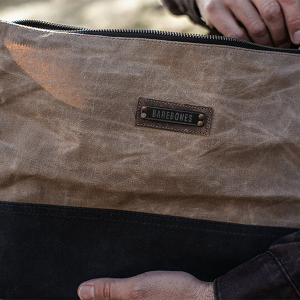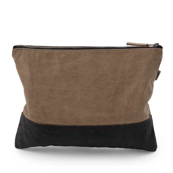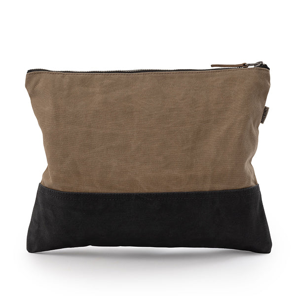 バックパックやトートバッグの中の事務用品をまとめて入れたり、こまごましたものを紛失しないように収納したりできます。ラージサイズのジッパーポーチは、12インチのラップトップキャリアとしても使用でき、充電器やアクセサリーを入れるスペースもあります。上質なレザーと同様、ワックス加工されたキャンバスは使えば使うほど風合いが増し、美しい艶が生まれます。また、ワックス加工されたキャンバスは非常に丈夫で、汚れを簡単に拭き取ることができ、動物に安全なレザーの代替品として使用しています。