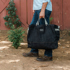 ログキャリア、カーキャンプの荷物持ち、大量の食料品入れなど、様々な用途でお使いいただけます。厚手で丈夫なコットンストラップと頑丈な金属製ハードウェアにより、長年にわたって使用できるバッグとなっています。上質なレザーと同様、ワックス加工されたキャンバスは使えば使うほど風合いが増し、美しい艶が生まれます。また、ワックス加工されたキャンバスは非常に丈夫で、汚れを簡単に拭き取ることができ、動物に安全なレザーの代替品として使用しています。