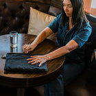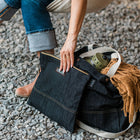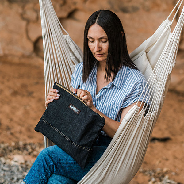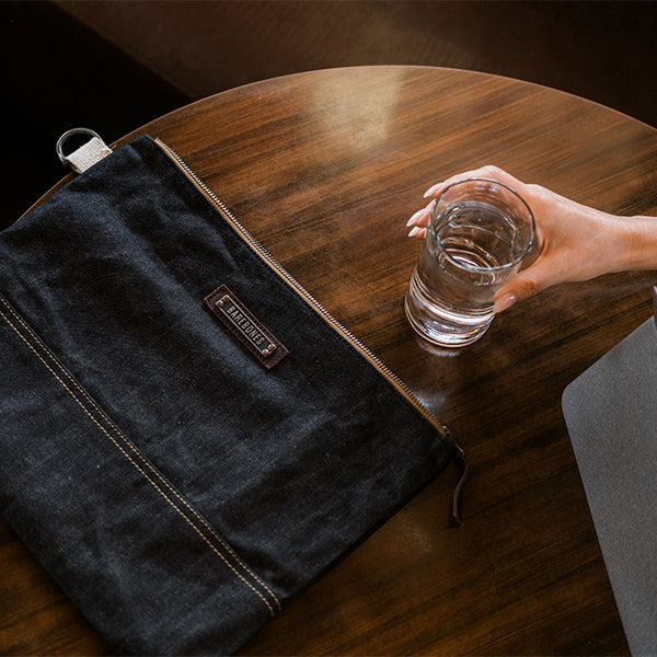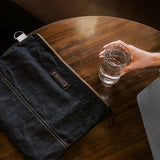 日常品をスタイリッシュに整理するのに最適で、バックパックやトートバッグの中の事務用品をまとめて入れたり、こまごましたものを紛失しないように収納したりできます。ラージサイズのジッパーポーチは、12インチのラップトップキャリアとしても使用でき、充電器やアクセサリーを入れるスペースもあります。上質なレザーと同様、ワックス加工されたキャンバスは使えば使うほど風合いが増し、美しい艶が生まれます。また、ワックス加工されたキャンバスは非常に丈夫で、汚れを簡単に拭き取ることができ、動物に安全なレザーの代替品として使用しています。