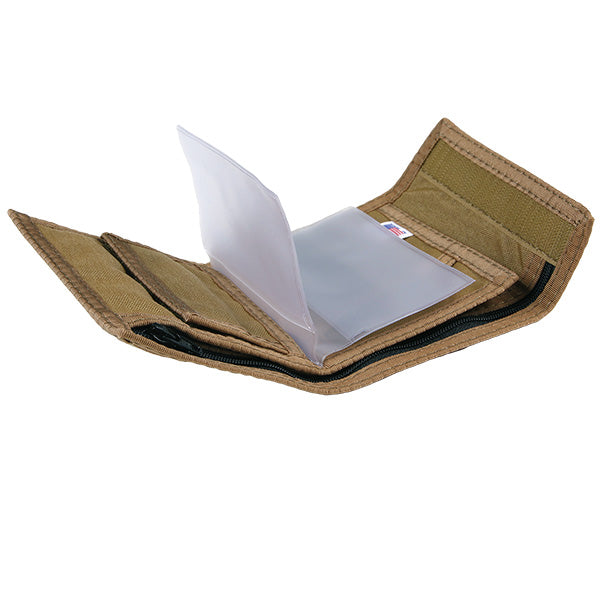 クレジットカードスロット、様々なサイズに対応する札入れポケット、YKKジッパーポケット、着脱可能なクリアーカード入れが備わりシンプルで非常に使いやすいウォレットです。