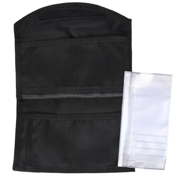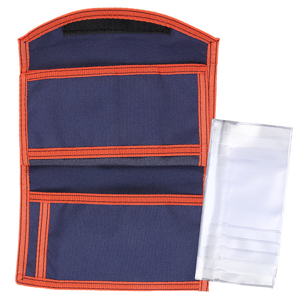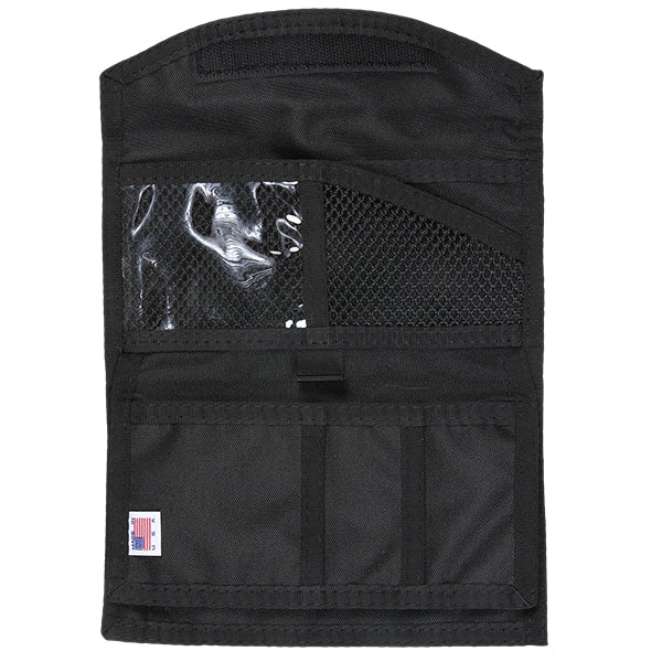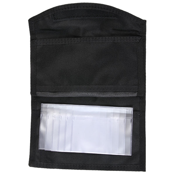 外側にジッパー式ポケット、内側にはクリアIDウィンドウが付いています。お札入れポケット×2、クレジットカードスロット×2、メッシュ製レシート入れ、ペンスロット、着脱可能なクリアーカード入れ付きでウォレットが膨らまずにスマートにいろいろ収納することが出来ます。