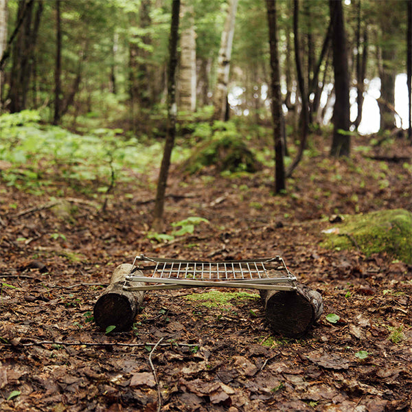 Wolf&Grizzly ウルフアンドグリズリー グリル M1 エディション with ファイヤーセットは丸められる網と折り畳み可能な脚からなる焚火用グリルです。