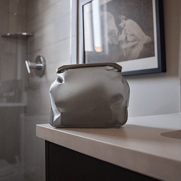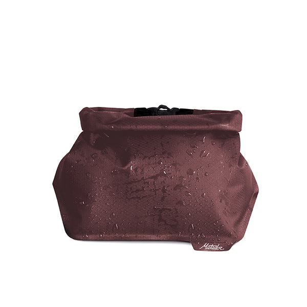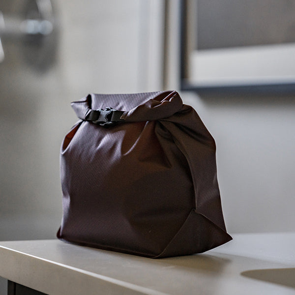 ロールトップデザインなので、これに入るものであれば、ある程度ニーズに応じてサイズを変更できます。透湿防水性のドライ・スルー™テクノロジーを備えたコーデュラ®素材を使用しているので、蓋を閉じて入れっぱなしの状態でも濡れた歯ブラシ等を乾かすことができます。 溶着構造で完全防水です。