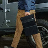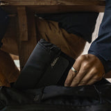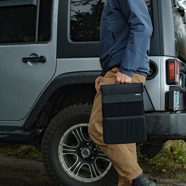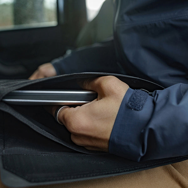 内側のドライバッグライナーにより、IPX6規格の防水性能を備えています。調節可能なフォールドオーバークロージャーは、13~16インチのノートPCにカスタマイズされたフィット感と素早いアクセスを提供します。外部からアクセス可能なアクセサリーポケットには、マウスや充電器を収納できます。