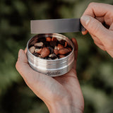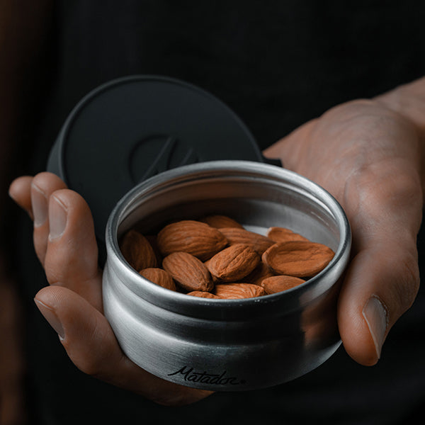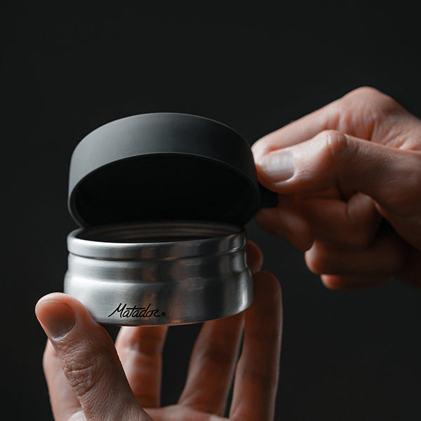 耐久性のあるアルミニウム製で中身を安全かつ乾燥した状態に保ちます。シリコン製の蓋のタブを上に引っ張るだけで簡単に開ける事が出来ます。