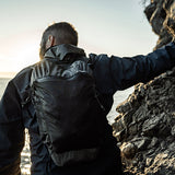 超軽量のUHMWPE強化Robicナイロンが優れた耐久性を発揮し、UTSコーティング、シールされた縫い目、シールされたジッパーが天候に左右されないデザインを実現しています。アルパイン対応の機能として、ギアループ、ツール用ショックコードキャプチャー、バックル式コンプレッションストラップを備えています。スターナムストラップと荷重分散型のショルダーストラップにより、機敏でバランスのとれたフィット感を実現します。付属のメッシュコンプレッションサックに収納して持ち運べます。