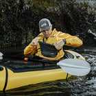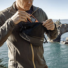UHMWPEで補強された超軽量のRobicナイロンが優れた耐久性を発揮し、UTSコーティング、シールされた縫い目、ロールトップクロージャーにより、メインコンパートメントは高い防水性を備えています。調節可能なベルトは、ウエストやクロスボディに装着してスリングとして使用できます。メインコンパートメントのロールトップにある革新的な一体型ジッパーは、素早くアクセスすることも、ロールして高い防水性を確保することも可能です。 フロントポケットに入れるか、付属のメッシュ製コンプレッションサックを使ってさらに圧縮することができます。