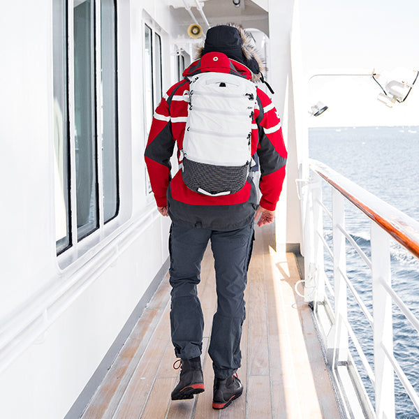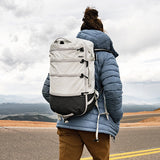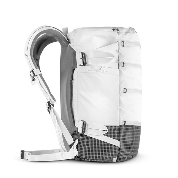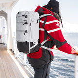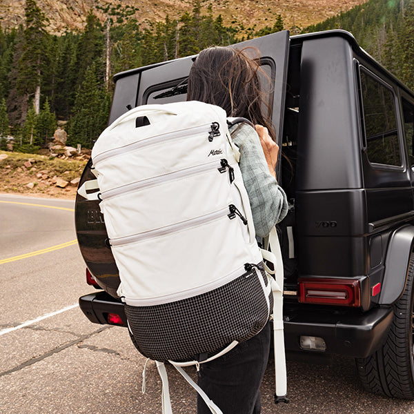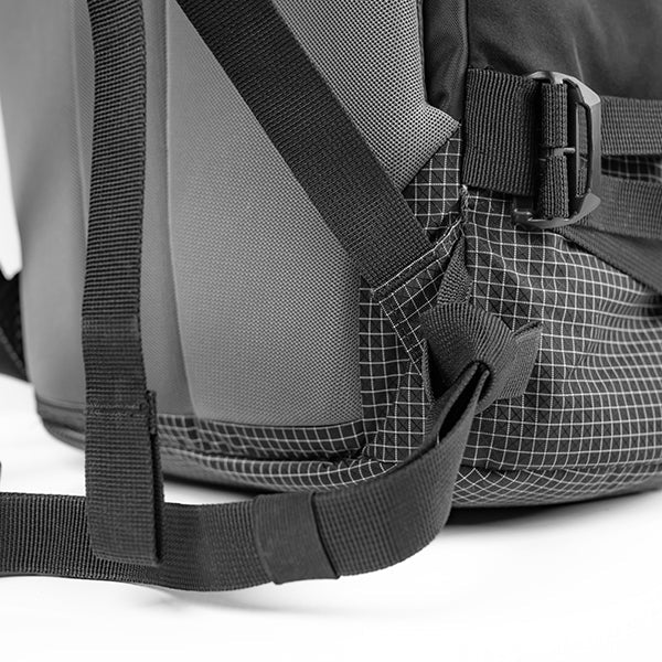 バックパックとして使用する際は、スムースな動きのショルダーストラップ、チェストストラップ、取り外し可能なシンプルなウェストストラップで調整してください。トップ、ボトム、サイドに丈夫なキャリーハンドルを装備していますので、持ち上げたり運んだりする際にストレスなくホールドできます。