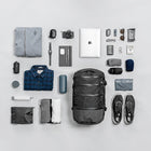 フロントにセグメント化された4つのジッパーポケットがあり、バッグの全容量にアクセスでき、アイテムを種類別、日別、アクティビティ別に整理できます。大きな荷物や汚れた服は、大型のクラムシェルポケットに収納できます。バック本体はブックオープニングスタイルの大開口で、大きなサイズの荷物の収納が簡単に行えます。外側からアクセスできるパッド入りのラップトップスリーブが背面に、サイドにはウォーターボトルポケットが付いています。トップにはフラットなポケットがあり、ディバイダーにより必要なガジェットをすっきり整理して収納ができます。すべてのジッパープルはセキュリティーループに通すことで防犯対策にもなり、リフレクティブウェビング採用で暗い道でも車のライトで反射します。