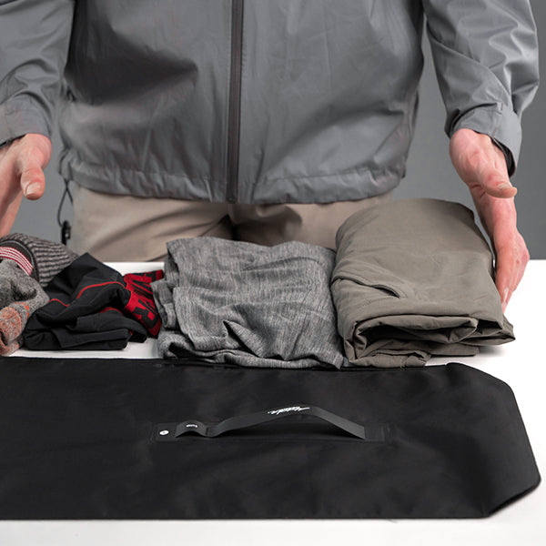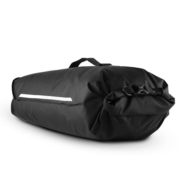 ロールトップクロージャーと完全に溶接された構造により、しっかりとした密封が可能で突然の雨でも内部の物が濡れる心配はありません。閉じた状態でもクリアウィンドウで中身を素早く確認することができます。フラットボトムデザインは、パッキング時に立ち上がり、収納物を安定させることができます。そして、荷物が少量の際にはフラットに収納でき、持ち運びの負担を軽減します。Hypalon™製のハンドルにはカラビナループ、ロールトップにはDリングのテザーポイントもあり、追加のアクセサリーを取り付けることができます。