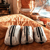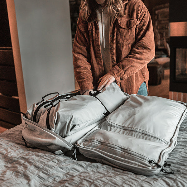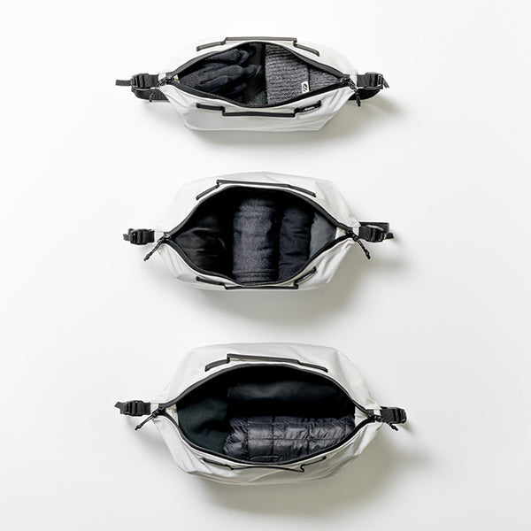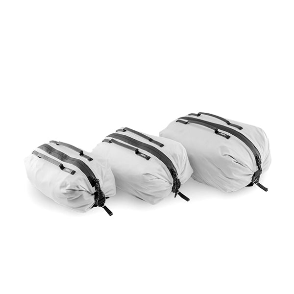 用途に合わせて使える3サイズセット。開口部が大きく開くので荷物の出し入れがしやすく、ジッパーを閉めて端を引っ張ることで、素早く中の荷物を圧縮することができます。スーツケースや旅行カバンの中をすっきりと整頓することができ、荷物をキューブ単位で取り出せるため、中身が散らかることもありません。持続可能なBluesign認証素材を使用し、YKKジッパーを採用するなど、耐久性に優れて長期間使用できるようにデザインされています。旅行の準備や片付けをサポートしてくれる便利なアイテムです。