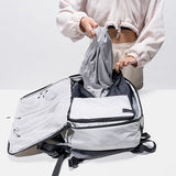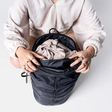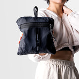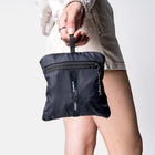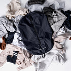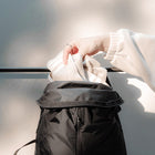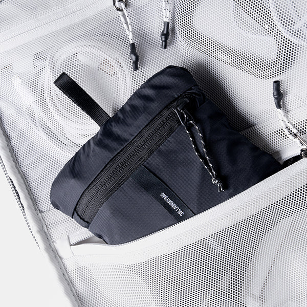 海外旅行や長期出張で、ホテルのランドリーサービスに洗濯物を預ける際にも便利にご活用いただけます。バッグの上部と前面の2か所のジッパーから簡単に洗濯物を出し入れでき、洗濯カゴのように吊るしたり、平らに置いたりと、場所に合わせて使用できます。トップやサイドには複数のハンギングループが付いており、ホテルのフックに吊るしたまま使用可能。また、トップにあるクリップ式のハングストラップは、タオル掛けにも吊るすことができるので便利です。湿気やにおいを抑制する耐水性生地を使用しているため、汚れた洗濯物を入れても安心。超軽量で、コンパクトにたため、持ち運びにも困りません。さらに、内側にはコインランドリー用の小銭などが収納ができる小さなポケットがついており、このバッグひとつでコインランドリーへスマートにお出かけできます。バッグ自体も洗濯機で丸洗いできるので、洗濯物と一緒に洗えば、きれいになった衣類を入れて気持ちよく持ち帰ることができます。
