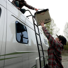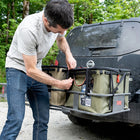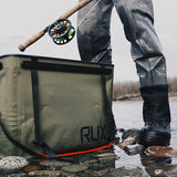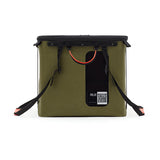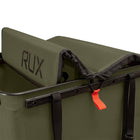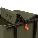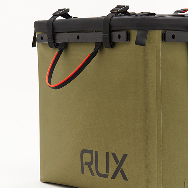 雨に濡れても雨水の侵入を防ぐ安心なゴム製の開閉部が特徴で、パッド入りの蓋は三つ折りにできるのでボックスの中身に簡単にアクセスすることができます。使用しない時にはRUXボックスの中に収納することができ、取り外してシートとして座ることもできます。