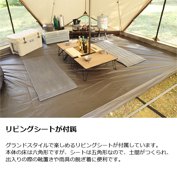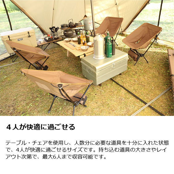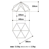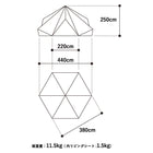 ・付属品:本体×1、リビングシート×1、センターポール×1、エクステンションフレーム×3、3mロープ×15、2mロープ×9、キャリーバッグ×1、ポールケース×1、ロープケース×1