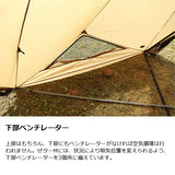 ※シンセティック(化繊)生地はコットン生地に比べると生地自体の水分含有量が低く、焚火等の火の粉で生地に穴があきやすい為、テント設置の際は必ず火元から離れた場所に設置するようお願いします。