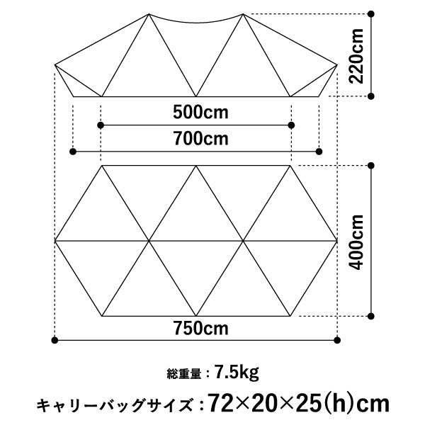 ・付属品:本体×1、メインポール×2、エクステンションポール×2、4m2又ロープ×2、3mロープ×8、キャリーバッグ×1、ポールケース×1、ロープケース×1