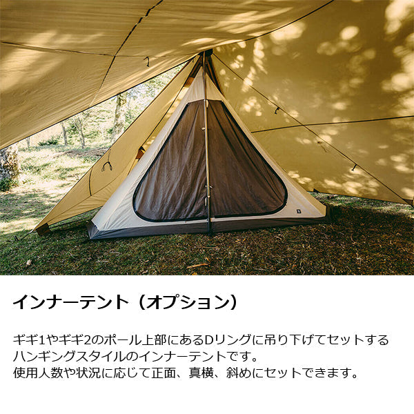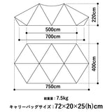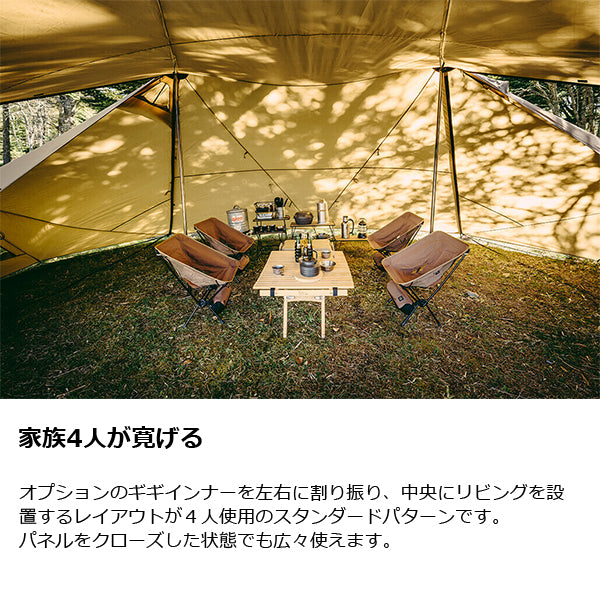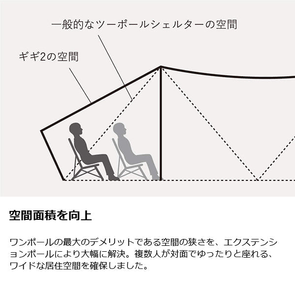 ZANE ARTS ゼインアーツ ギギ2 PS-022は多彩なパネルアレンジと広い空間設計を追求。ギギ1の基本デザインをそのままに、ツーポール仕様に仕上げたラージサイズシェルター。