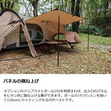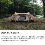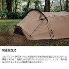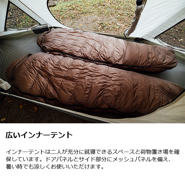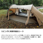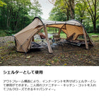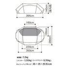 ・付属品:本体×1、インナーテント×1、フットプリント×1、フレーム長×2、ブリッジフレーム×2、フレーム短×2、2.5mロープ×12、1.5mロープ×4、リペアパイプ×1、キャリーバッグ×1、ポールケース×1、ロープケース×1