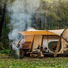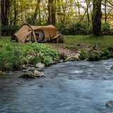 ※シンセティック(化繊)生地はコットン生地に比べると生地自体の水分含有量が低く、焚火等の火の粉で生地に穴があきやすい為、テント設置の際は必ず火元から離れた場所に設置するようお願いします。