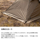 ※シンセティック(化繊)生地はコットン生地に比べると生地自体の水分含有量が低く、焚火等の火の粉で生地に穴があきやすい為、テント設置の際は必ず火元から離れた場所に設置するようお願いします。