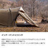 ・付属品:本体×1、インナーテント×1、フレーム×6、3.5mロープ×4、2mロープ×8、キャリーバッグ×1、ポールケース×1、ロープケース×1